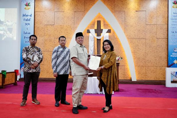 Di tengah suka cita suasana Natal, pada Selasa (24/12/2024), Menteri ATR/Kepala BPN, Nusron Wahid menyerahkan sertipikat GKP ini kepada Ketua Umum Majelis Sinode GKP, Magyolin Carolina Tuasuun. “Alhamdulillah, menjelang Natal ini kami dari Kementerian ATR/BPN bisa menerbitkan dan menyerahkan Sertipikat Hak Milik untuk lembaga keagamaan, dalam konteks ini adalah gereja. Karena sekarang ini, lembaga keagamaan apa pun agamanya di Indonesia, selama agamanya diakui di Indonesia, itu boleh memiliki Sertipikat Hak Milik,” ujarnya.